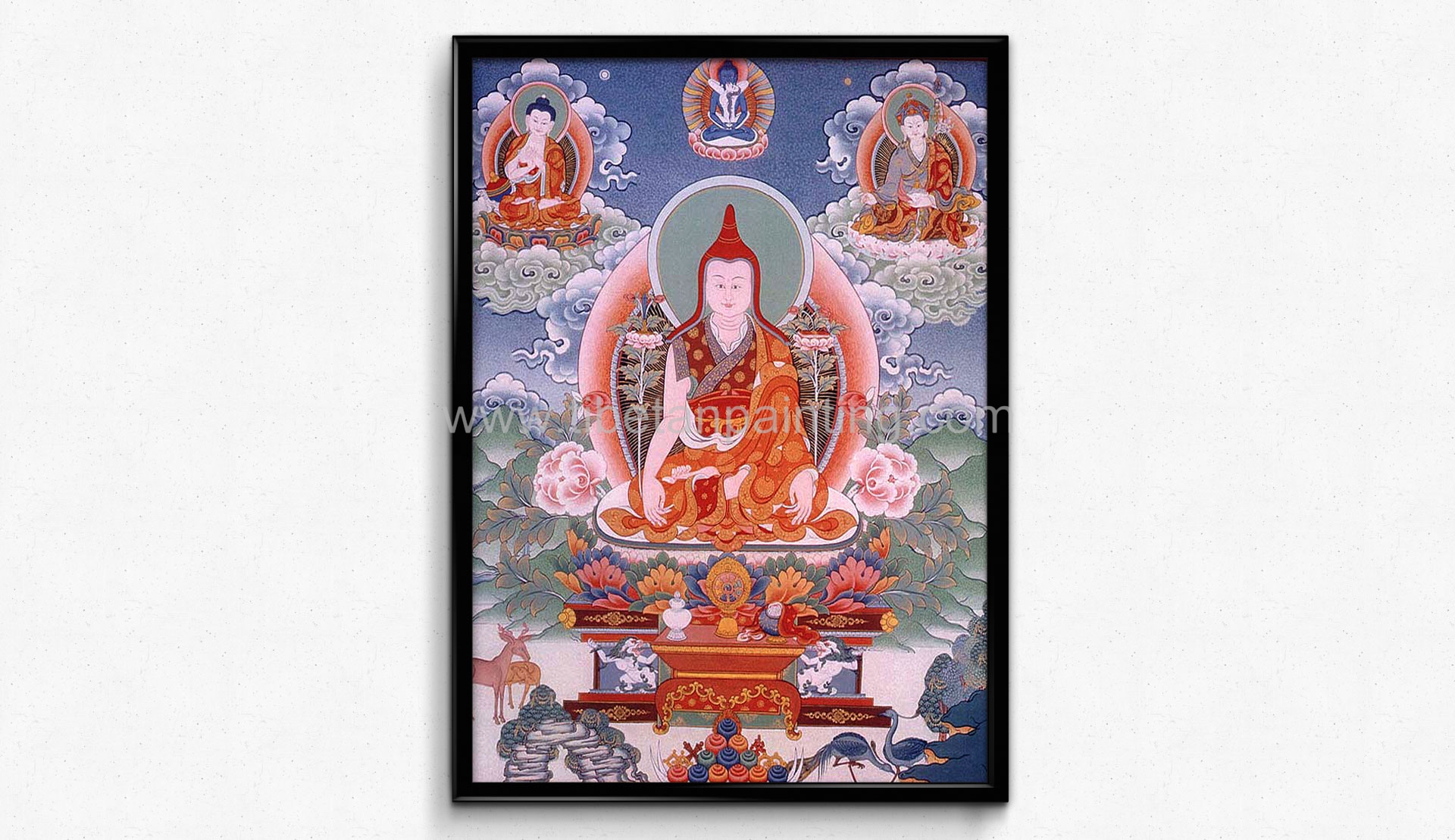 One of the Greatest Dzogchen teachers depicted w/Guru Rinpoche, Garab Dorje and Samantabhadra. A thangka for Dzogchen practitioners.