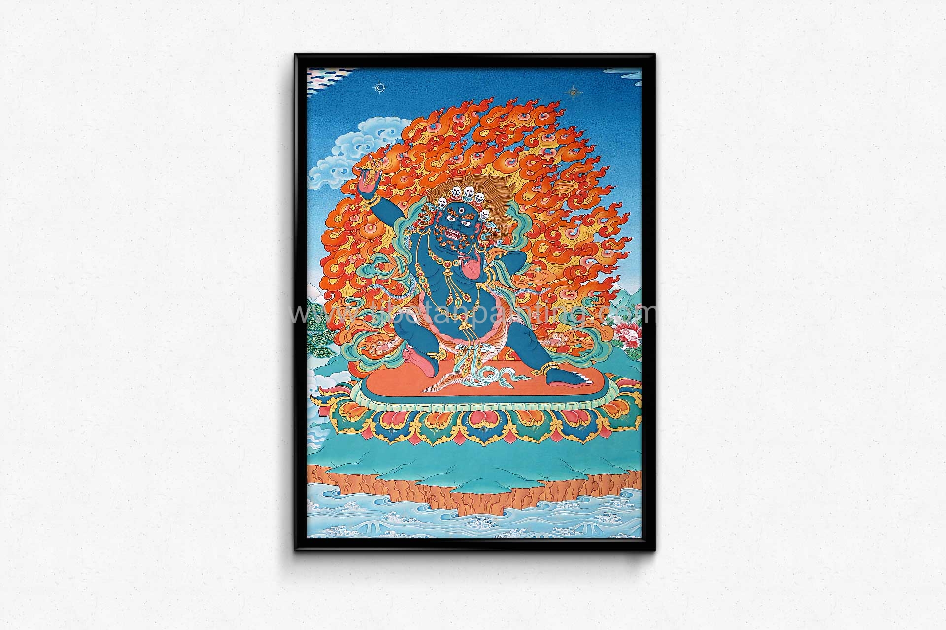 Vajrapani, the embodiment of the Buddha's infinite power is always represented in wrathful form. He is one of the earliest appearing bodhisattvas in Mahayana Buddhism. He is the protector and guide of Gautama Buddha and rose to symbolize the Buddha's power.